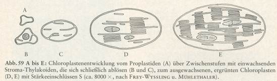 Bei der Chloroplastenentwicklung enstehen die Thylakoide aus Einstülpungen der inneren Membran, ähnlich wie die Cristae bei