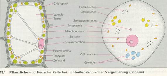 Die Chloroplasten, die Organellen der Photosynthese, besitzen eine typische Länge von 0,5 µm. Wie die Mitochondrien besitzen sie eine äußere und eine innere Membran mit einem dazwischenliegenden Intermembranraum.