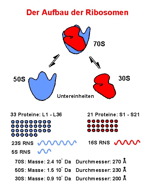 davon, die mit 23S bzw. 5S bezeichnet werden (S bezeichnet hier den Sedimentationskoeffizienten), in der