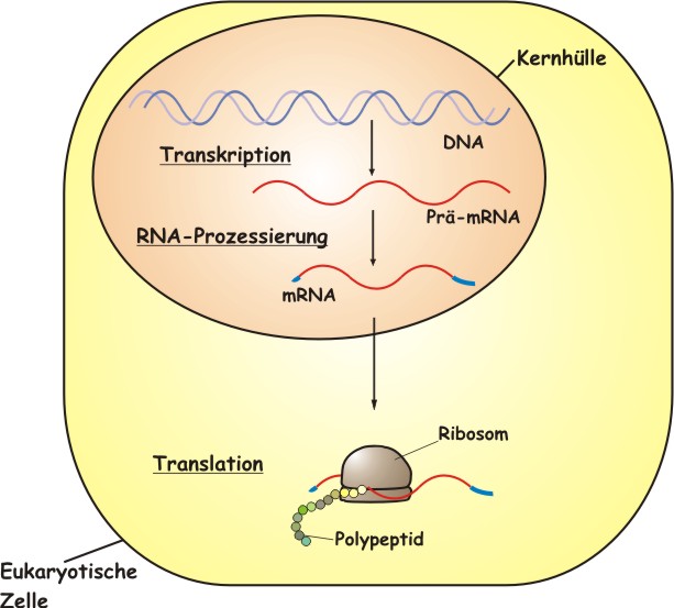 Die Translation ist die Übersetzung des genetischen Codes, auf der DNA/RNA-Ebene, in die Sprache der