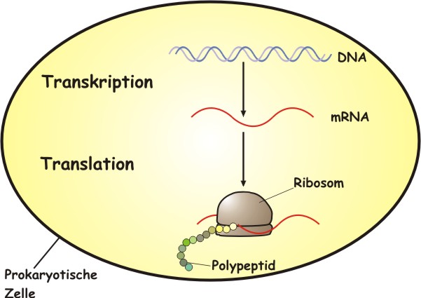Die Proteinbiosynthese verläuft bei Prokaryonten uns Eukaryonten leicht unterschiedlich: