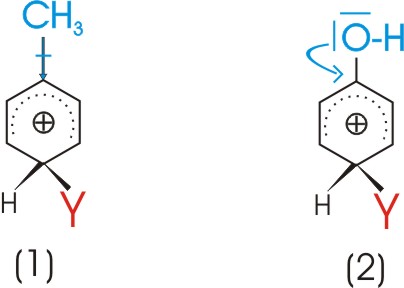 der positiven Ladung des Ions kann durch einen elektronenliefernden Erstsubstituenten