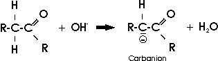 Wie erwähnt können Carbonylverbindungen unter der Wirkung starker Basen ein Proton abspalten und dabei Carbanionen bilden. Carbanionen sind sehr stark nucleophil und werden leicht an ein Carbonyl-C-Atom addiert, wodurch sich neue C-C-Bindungen bilden. Den einfachsten Fall einer solchen Reaktion stellt die Bildung von Aldol aus zwei Molekülen Acetaldehyd dar (Aldoladdition)